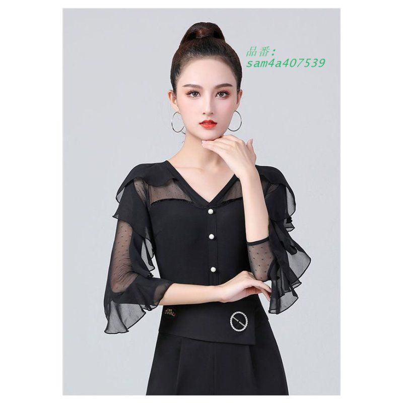 トップス レディース 社交ダンス ダンスウェア レオタード 長袖 Vネック 競技着 社交ダンス衣装 練習着ステージ 演出着 衣装 上着 am 4 a 407539