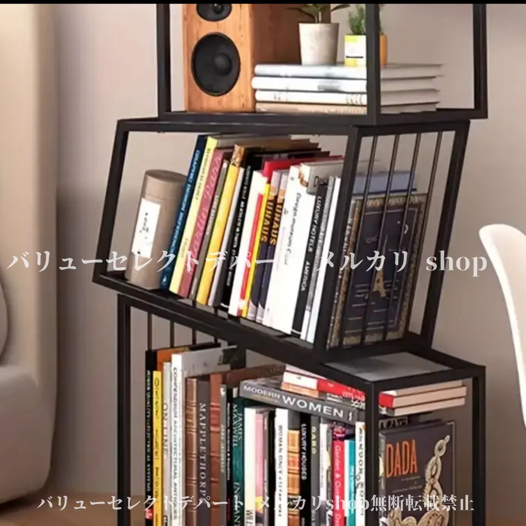 ブックシェルフ メタル 3段 重厚 ブラック アイアン 収納 ユニット 自立式 頑丈 本棚 書斎 オフィス 用 組立 簡単 コーナー 棚 モダン 家具 コンパクト ラック 本収納 空間 活用 スタンド シンプル スチール 壁際