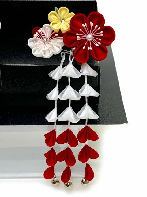 七五三 髪飾り 3点セット 7歳 つまみ細工 勝山セット 赤xピンク 梅