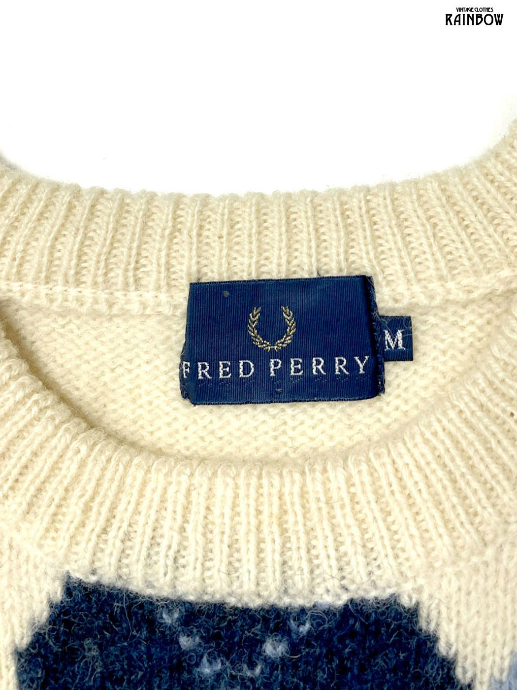 古着 FRED PERRY フレッドペリー アーガイル柄 チェック柄 ニット セーター ベージュ ttu 2509018
