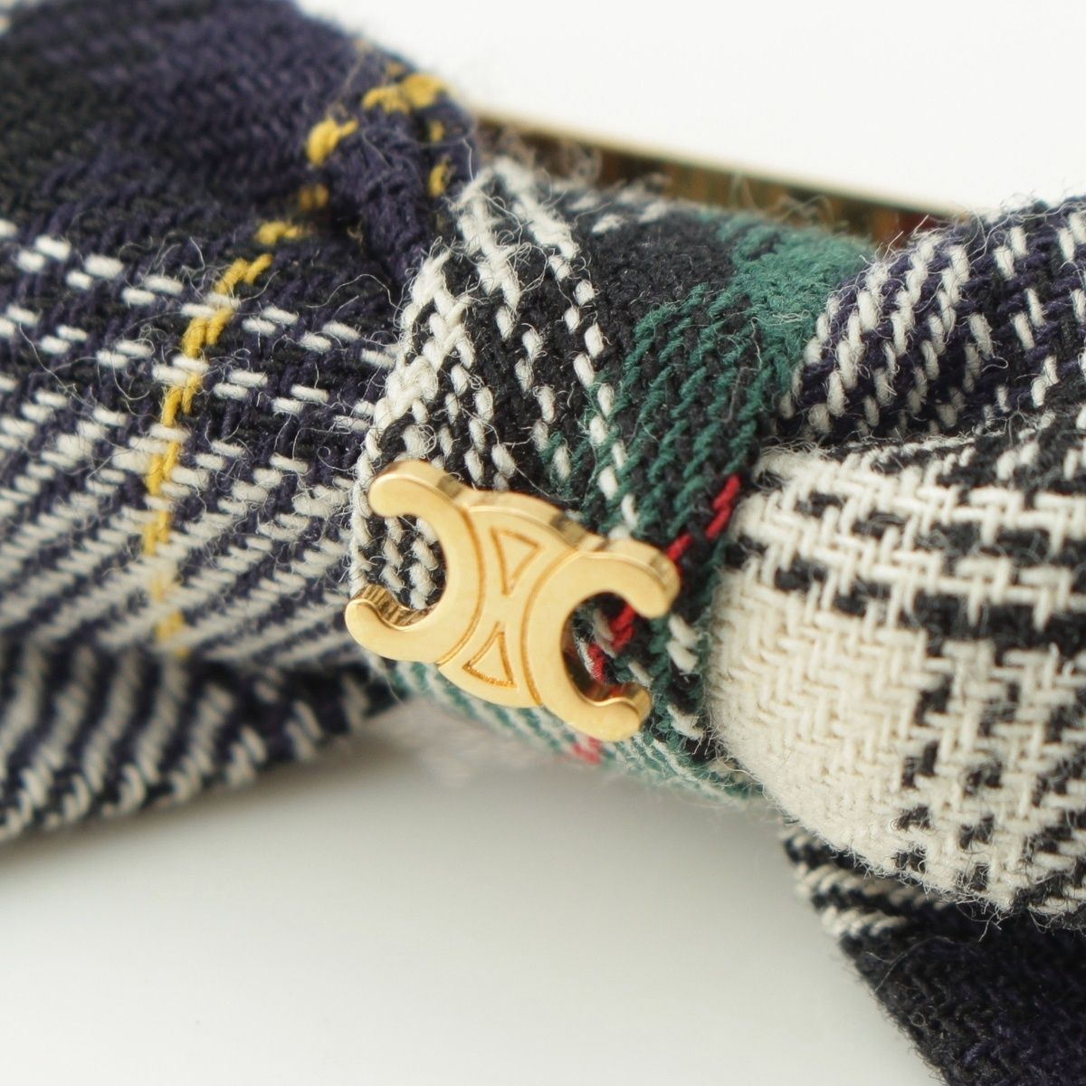 セリーヌ トリオンフ ゴールド金具 チェック柄 リボン バレッタ クリップ ヘアアクセサリー マルチカラー