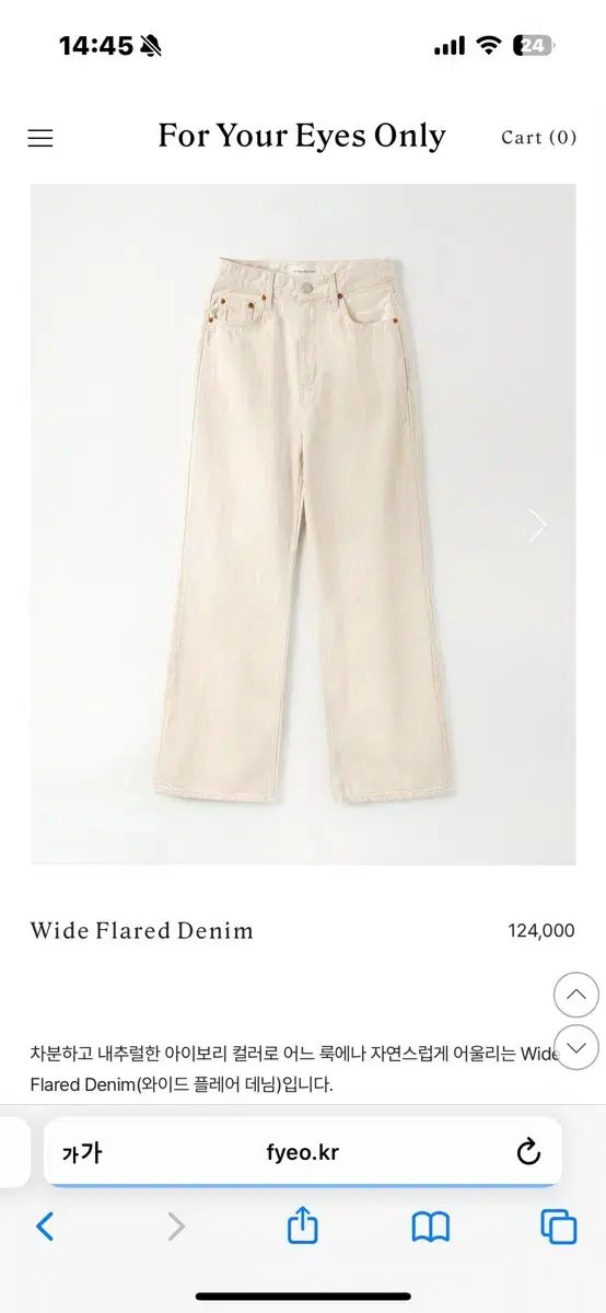 アイボリーカラーのフォージオンワイドフレアデニムです。落ち着いた色味はどんな装いにもピッタリです。ワイドフィットで着心地も快適です。ご不明な点がなければ、すぐに安心してお支払いいただけます!