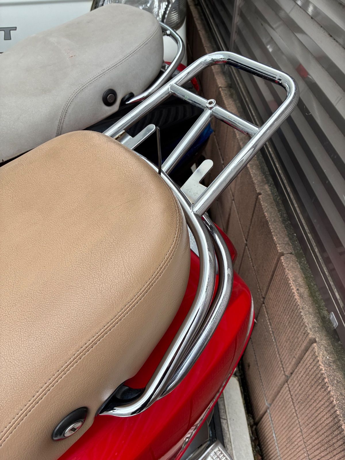 ベスパLX用のトップボックスリアキャリアです。純正のトップボックスをワンタッチで装着可能な優れ物です。程度は良いと思います。あくまで新品とご理解の程よろしくお願い致します。