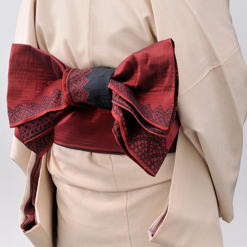 ファニーココ 桐生織 レース柄リバーシブル織兵児帯 兵児帯 大人 レース 赤黒 1