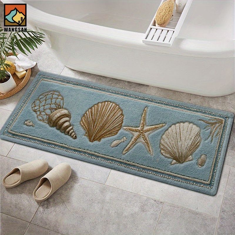 バスマット ポリエステル 洗濯機洗浄 滑り止め スターフィッシュ 貝殻 ヒトデ バスルーム 玄関 キッチン リビングルーム 長方形 アメリカン 海好き シック北欧 シンプル