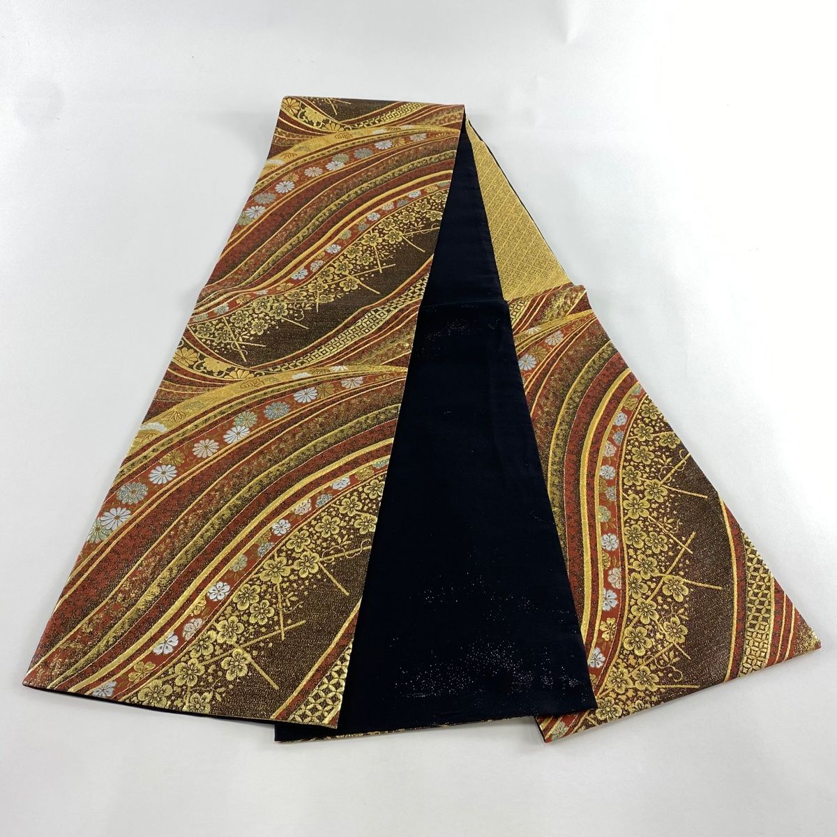 袋帯 秀品 松竹梅 菊唐草 箔 金糸 赤茶 六通 正絹