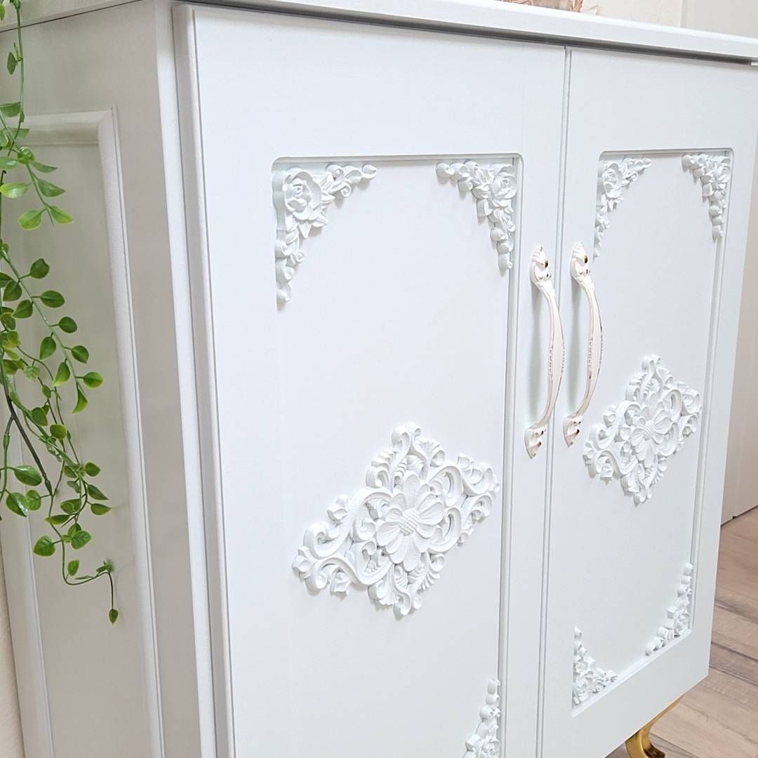 まるでおとぎ話のお部屋に置かれているような、ロココ調デザインのホワイトキャビネットです️✨