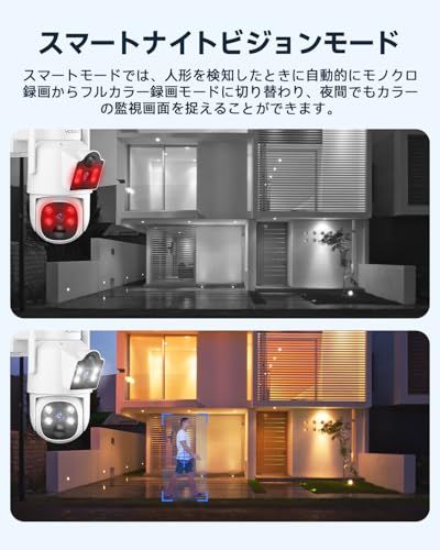【デュアルレンズ デュアル画面 360死角なし】300万画素300万画素 防犯カメラ屋外防犯カメラの監視範囲は限られており、片側の映像しか確認できず、反対側が見えないことを心配されていませんか?当社の屋外防犯カメラは、最新のデュアルレンズ設計を採用しており、固定レンズと回転レンズの2つを搭載しています。この防犯カメラは水平方向に355、垂直方向に90回転可能で、リアルタイムの分割画面表示にも対応しています。これにより、見たい場所を自在に確認でき、360全方位の視界を確保し、死角のない監視が実現します。家の内外を問わず、パノラマビューを同時に確認でき、オンラインでも視聴が可能です。これにより、家全体を真に監視し、家族の安全をしっかりと守ります