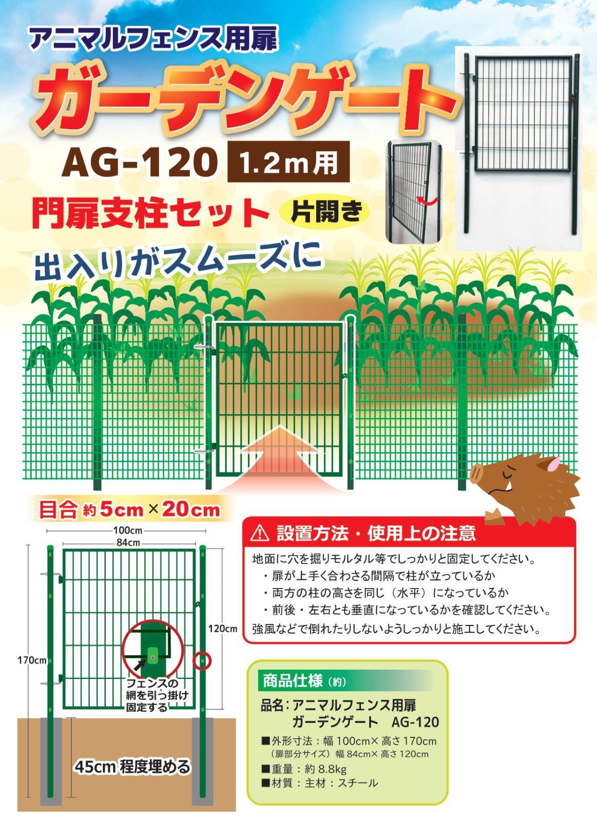 アニマルフェンス用扉 グリーン ガーデンゲート1.2m用 防獣フェンス ドッグラン 侵入防止柵 出入り口ゲート 片開き