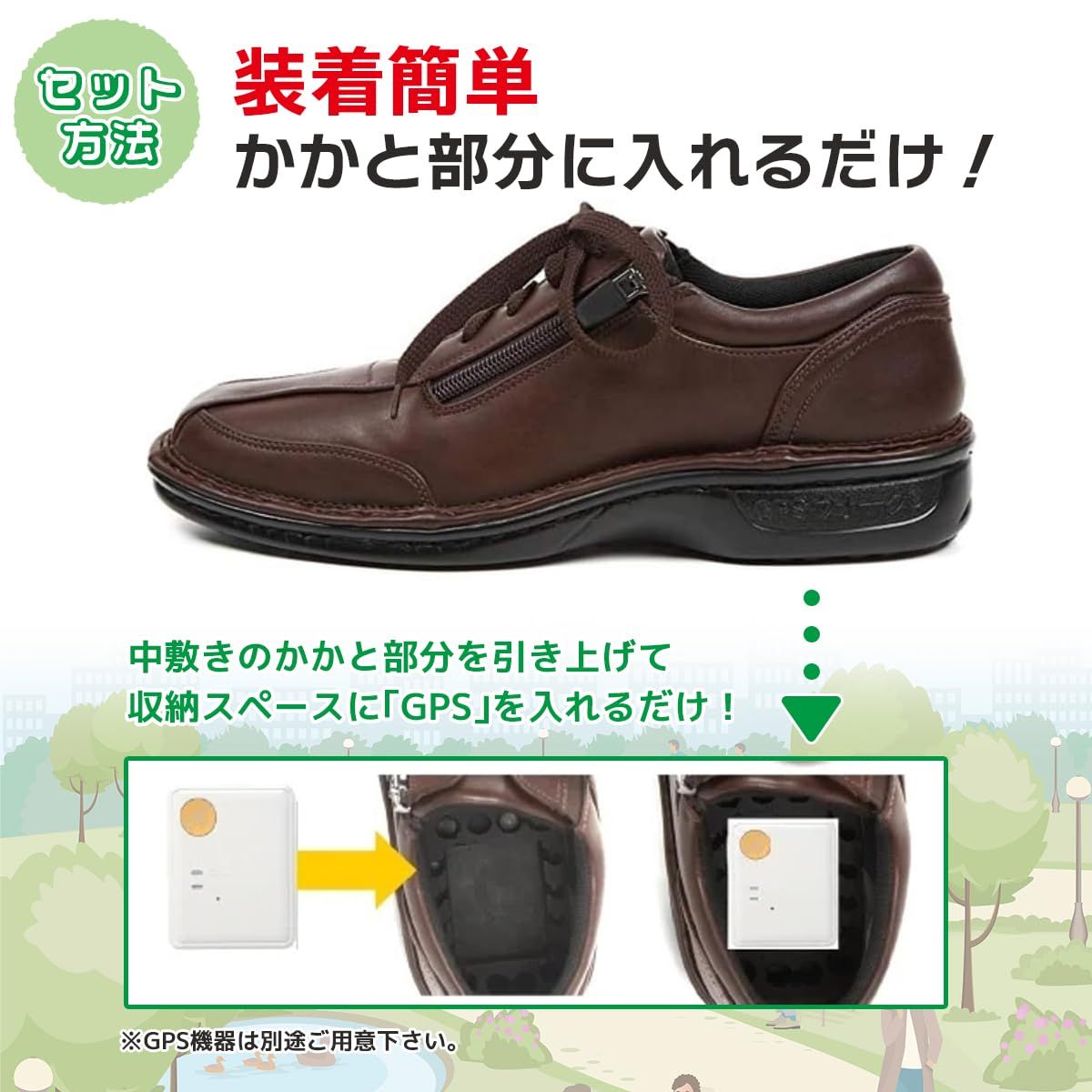 介護現場の声を聞いて、ケア・リハビリシューズ専門メーカーが開発しました。小型GPS機器を靴底に内蔵する事が出来、認知症による徘徊行動をみまもる事が出来ます。GPS機器は含まれておりません。別途サービス会社との契約が必要です。