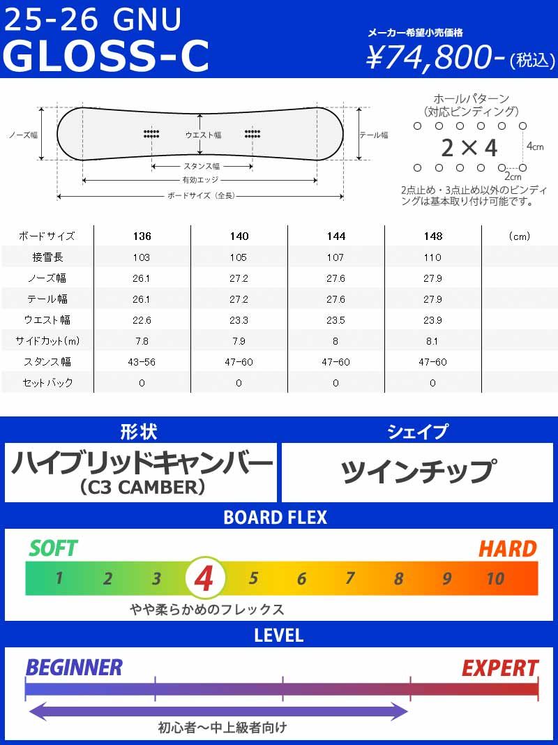 25-26 GNU|グヌー GLOSS-C グロス レディース スノーボード ジブ パーク 板 2026