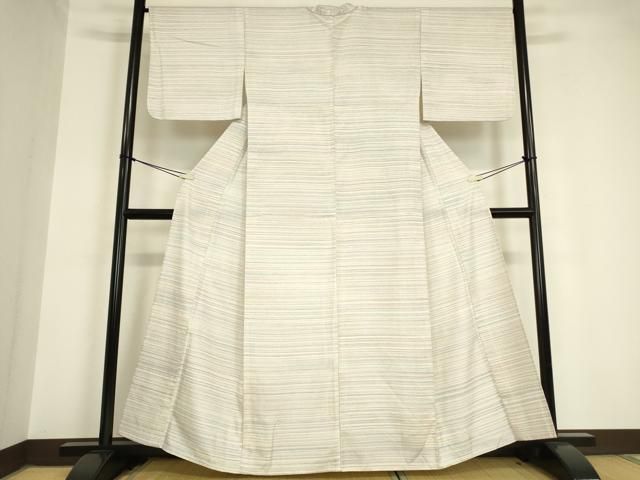 平和屋着物 薩摩結城 単衣 縞 正絹 az