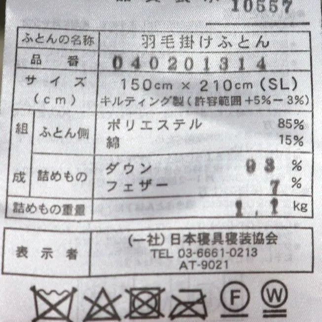 シングル羽毛ふとん