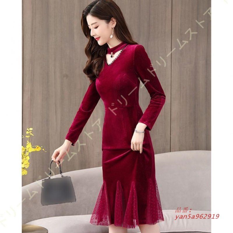 イブニングドレス パーティー パーティードレス 長袖 キャバ カクテルドレス ブライダルドレス マーメイドライン タイト 大きいサイズ 花柄ドレス yan 5 a 962919