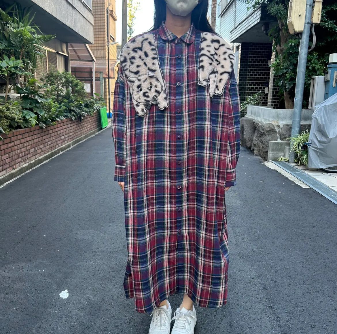 使いやすいチェック柄に猫の柄がとても可愛いです。1枚で着るだけで存在感抜群です。