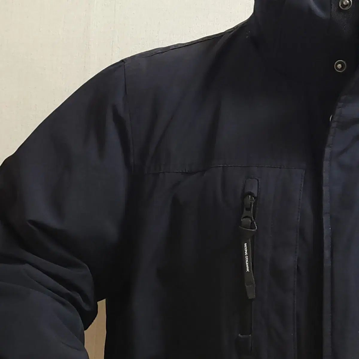 これはナショナルジオグラフィックのネイビーダウンジャンパーです。襟ぐりが高くなり暖かさも良さそうです。袖のポイントディテールがさらにスタイリッシュになります。別途ご不明な点がございましたら、すぐに安心してお支払いください!