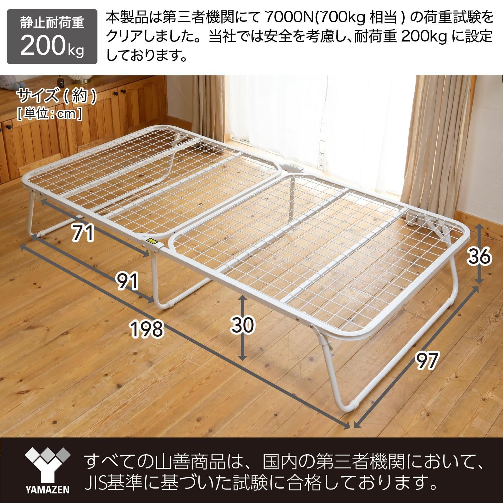 ベッドフレーム幅97 奥行195 高さ36 cm 耐荷重200㎏ メッシュ 通気性 完成品 シングル パイプベッド 折り畳みベッド 組立不要 一人暮らし ベッド マットホワイト 山善 YAMAZEN MF 97195 MWH