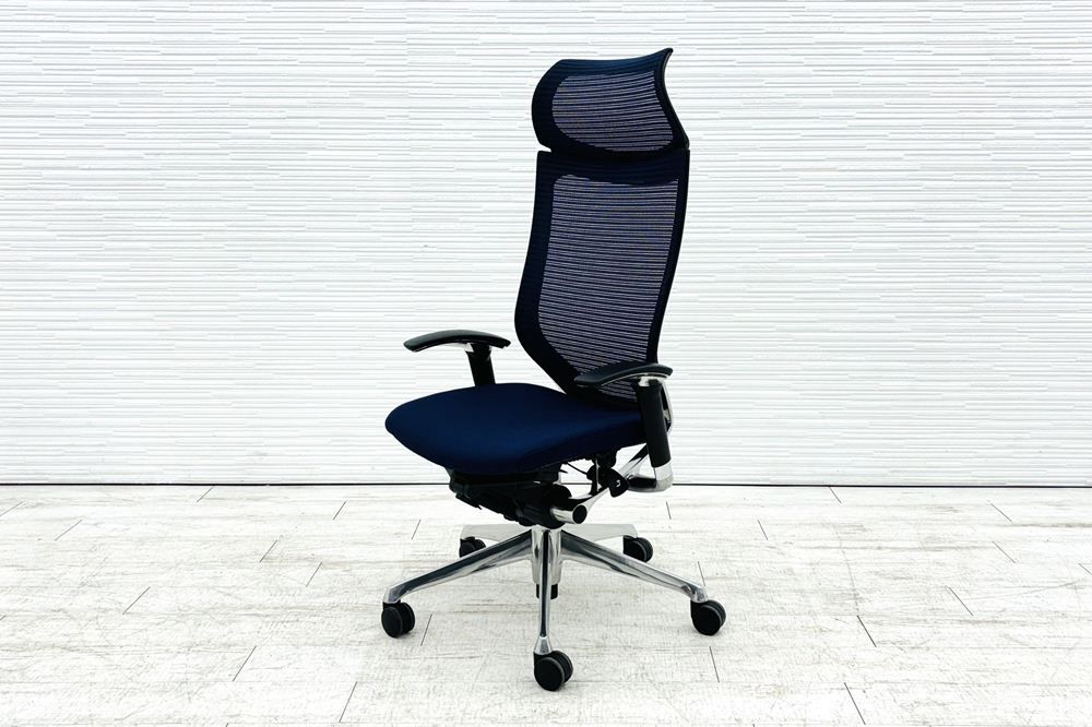 オカムラ バロンチェア Baron エクストラハイバック 可動肘 オフィス家具 固定ヘッドレスト ポリッシュフレーム ダークブルー