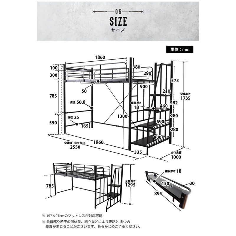 階段付きヴィンテージロフトベッド フレームのみ 全 480