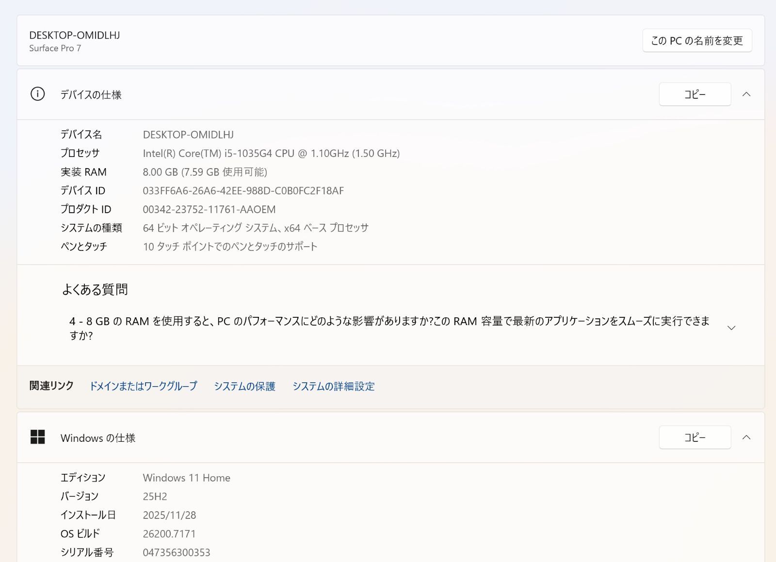 CPU:Intel Core i5-1035G4 1.10GHz(1.50GHz)