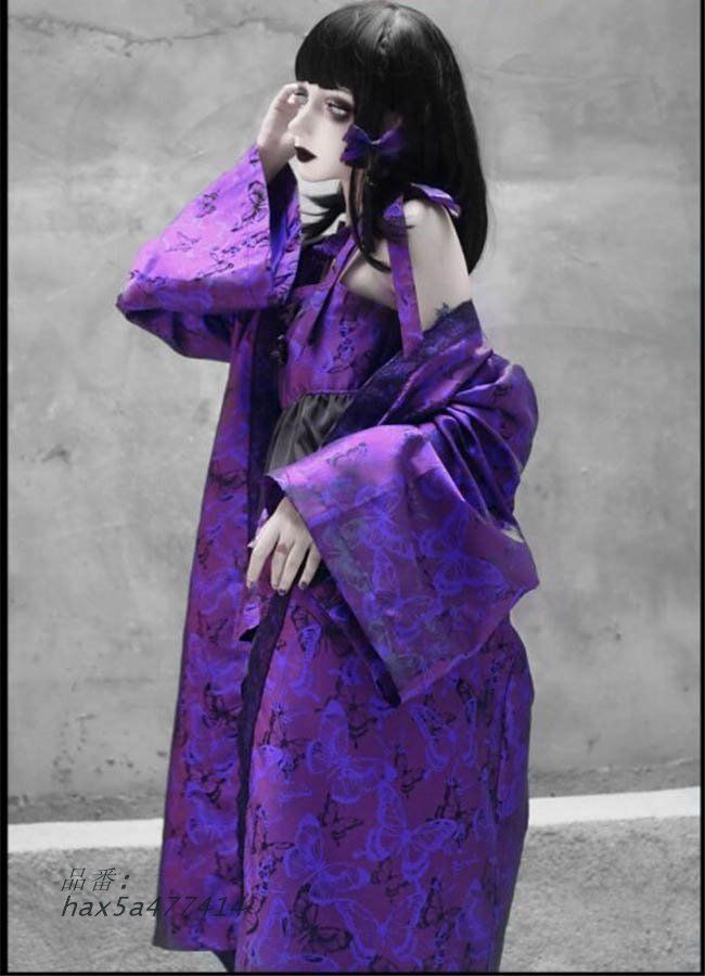 仮装舞踏会 女性用 ゴシック暗黒 パンク風 振袖 パープル 着物 コスチューム 歌姫 3点上下セット hax 5 a 477414