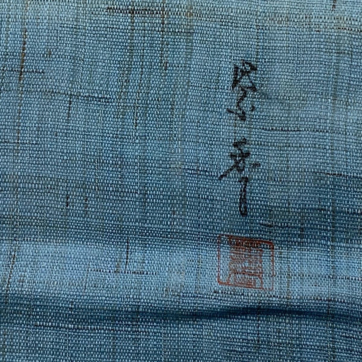 名古屋帯 落款 葡萄 花器 金彩 水色 正絹