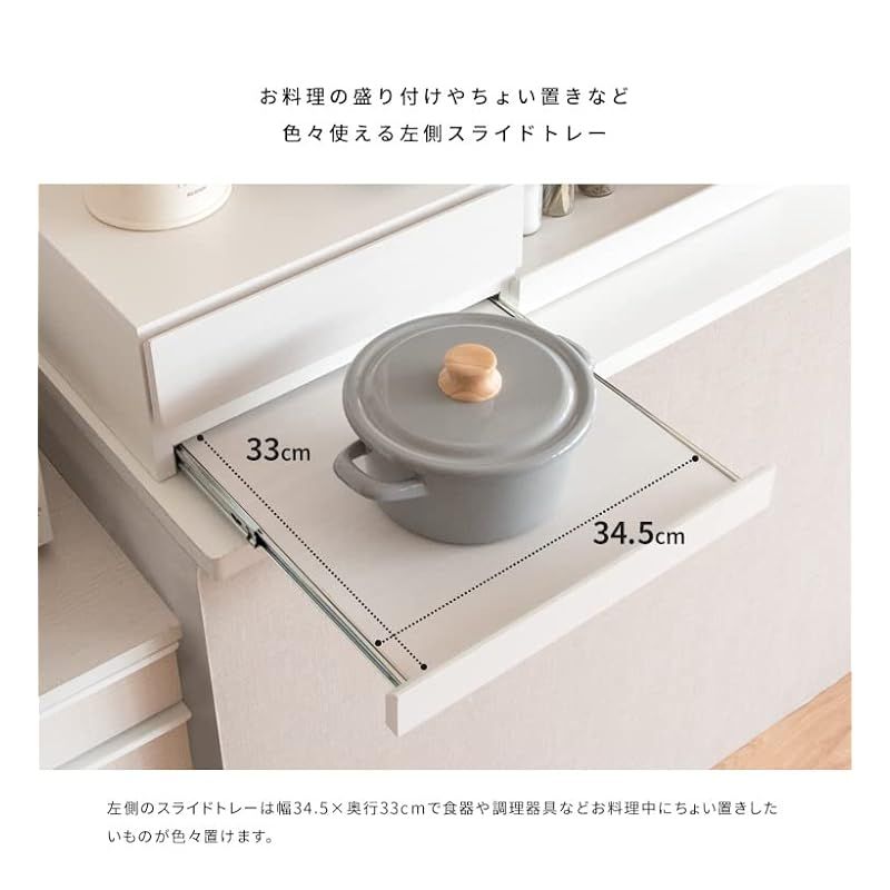 レンジ下トレー『Avenir(アベニール)』。 トレーにそれぞれ調理器具や料理がサッと置けて家事効率アップ間違いなし。 必要な時だけ引き出せる便利なスライドトレーで、使わないときも邪魔にならず、手狭なキッチンのお家やワンルームなど、一人暮らしの方にもオススメです。 引き出し収納もありカトラリーやキッチン雑貨も収納できます。 機能性だけでなくデザインにもこだわったトレーは、木目柄2カラーと大理石柄2カラーの4タイプをご用意 キッチンをスタイリッシュに演出してくれます