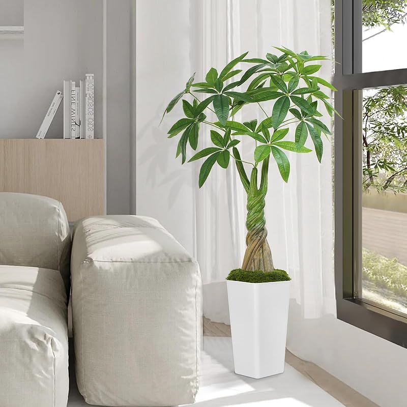 Keeplush パキラ 多幸の木 高さ120 cm フェイクグリーン 大型 観葉植物 フェイク 18本枝葉 光触媒 空気清浄 消臭 抗菌 白色 鉢付き 室内用 おしゃれ インテリア 玄関 リビング オフィス プレゼントに