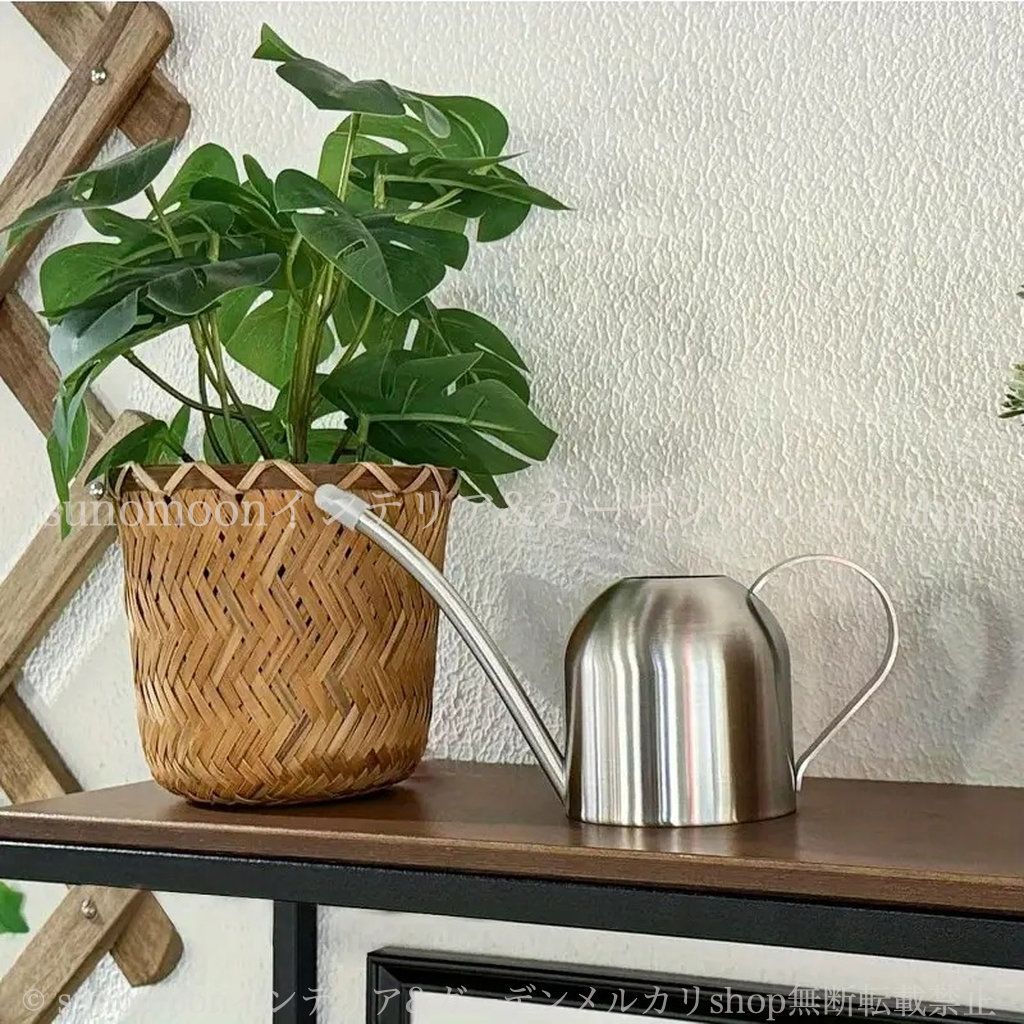 このジョウロは、ステンレス製で錆びにくく、長期間使用しても色艶を保ちます。シルバーの美しい輝きは、どんなインテリアにも溶け込み、オシャレなアクセントとなるでしょう。また、シンプルな形状は、飽きが来ず、飾っておくだけでも楽しめる一品です。