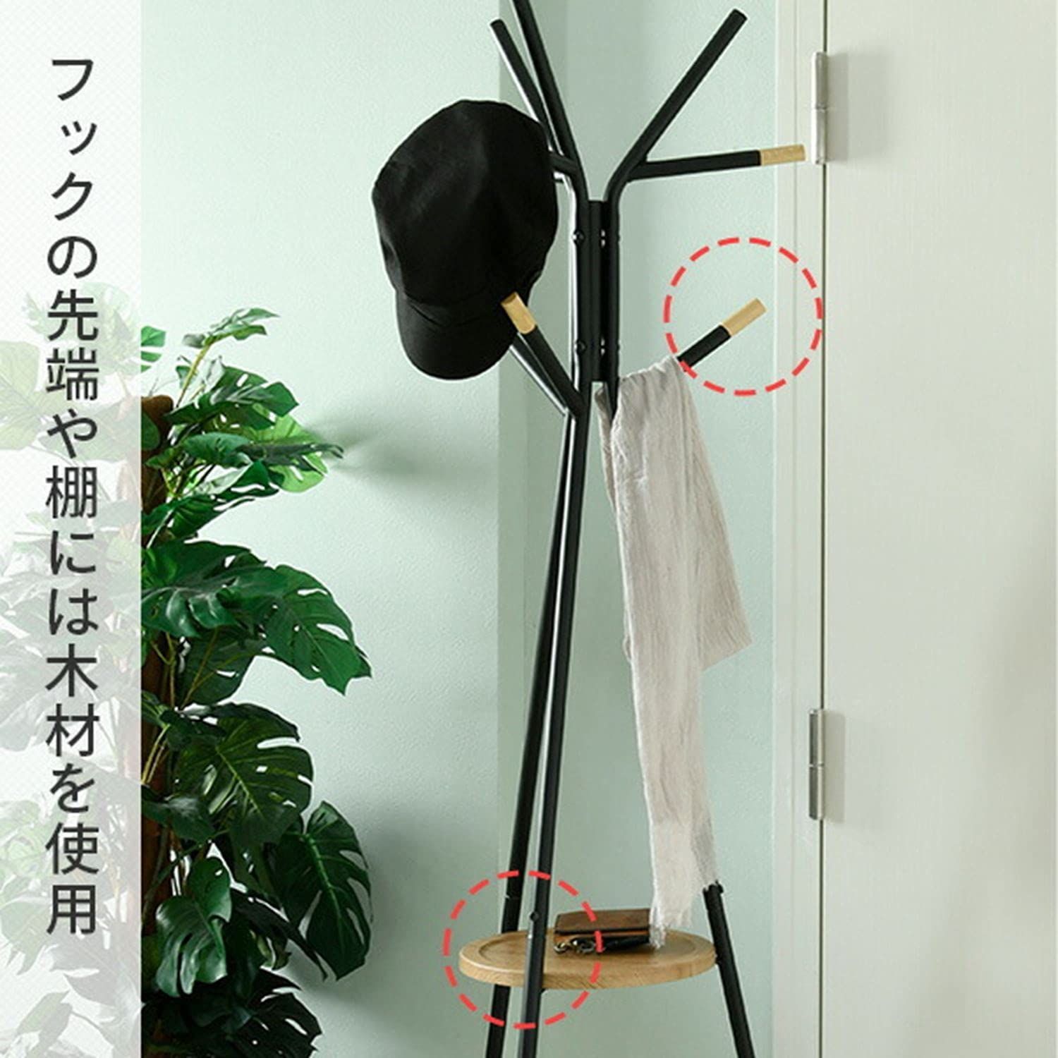 組立かんたん 衣類収納 オーク サンドブラック 玄関 ハンガーラック コートハンガー 幅45×奥行45×高さ178 cm RTH-9 OAK SBK 棚付き ポールハンガー 山善