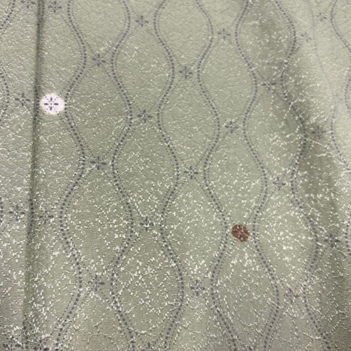 小紋 身丈161 cm 裄丈67 M 袷 幾何学 地紋 薄緑 正絹 秀品