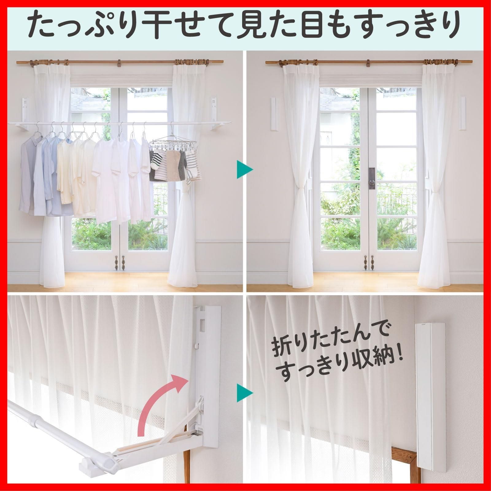 [山善] 室内物干し 窓枠物干し 物干し竿 室内 省スペース 洗濯物干し 伸縮 壁付け 日本製 (コーナーでも使える/取付け穴が目立たない) 耐荷重10kg 部屋干し 竿内寸最大2m 窓枠 梅雨 組立品 ホワイト NPH-8025(WH)