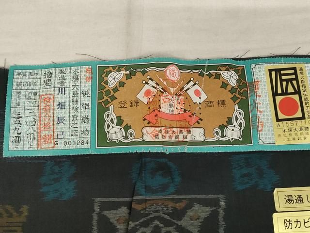平和屋着物 夏物 本場大島紬 夏大島 更紗花文 証紙付き 正絹 st