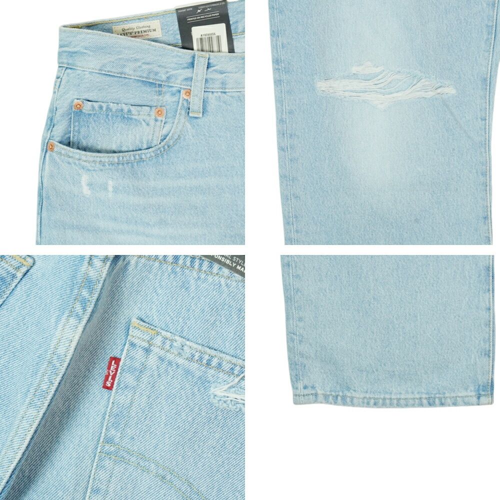 1873年以来のオリジナルのジーンズ501。ミッドライズ、ヒップから腿はゆるめのストレート。5ポケット、ノンストレッチのコットンデニムで、ヴィンテージ感のあるライトブルーが合わせやすい1本です。コットン100%