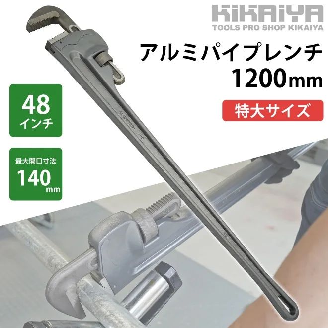 アルミパイプレンチ 1200 mm 48インチ アルミ製 特大サイズ 鋼管 配管 水道管 ガス管 工具 KIKAIYA