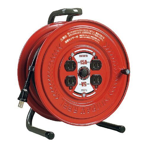 ●屋内用コードリール●サイズ/275×181×324m●コード長さ/30m●定格電流/125V・5A●コンセント(125V・15A)/2P×4個●防塵シャッター付き●コード溶解防止温度センサー付き