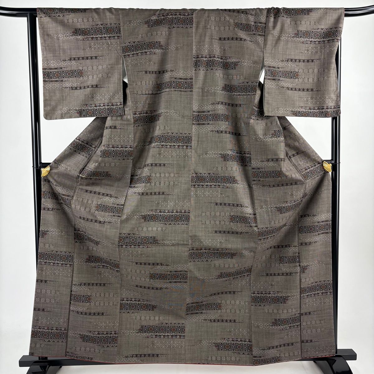 大島紬 身丈163 cm 裄丈67 M 袷 純泥染 証紙 花 霞 焦茶色 正絹 秀品