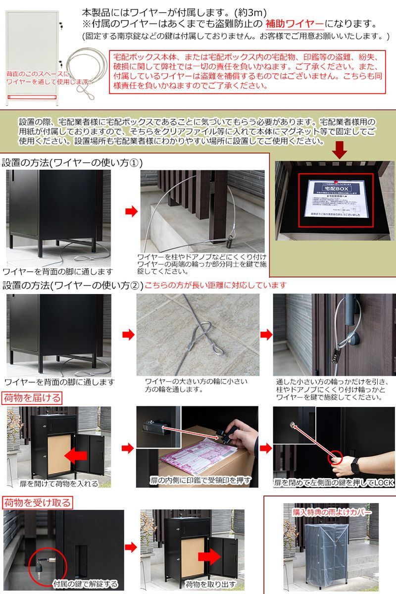 ハイタイプ 2ドア 宅配ボックス 50 x 40 91 cm スペアキー 盗難防止ワイヤー