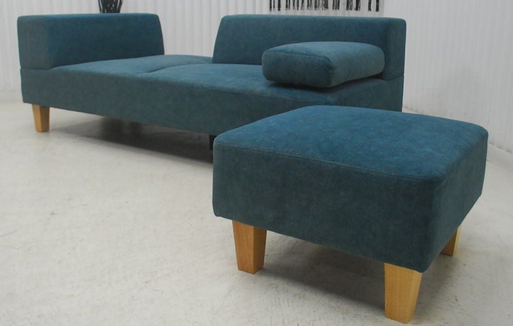 アウトレット 現品限り 一部 大 ファブリック 3人掛け 布製 ソファー オットマンセット ブルー