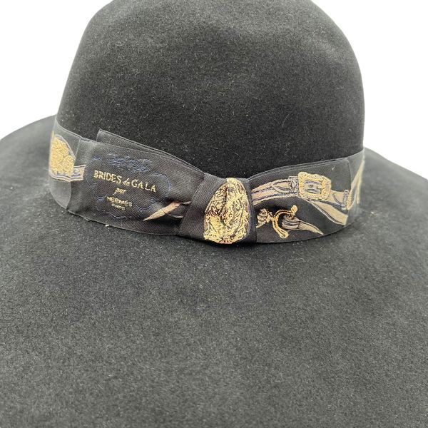 エルメス HERMES 帽子 Francoise フランソワーズ BRIDES de GALA ウールハット つば広 黒 毛100% 絹 綿 56 レディース 5 E 041