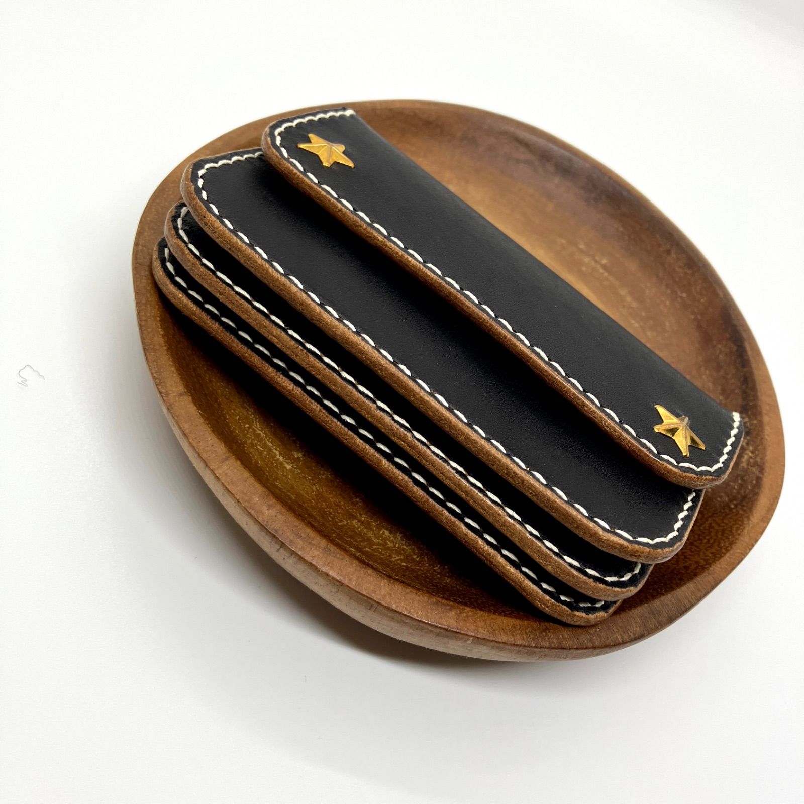 リトルトラッカー 星 国産ヌメ革 茶芯 ブラック 黒 手縫い