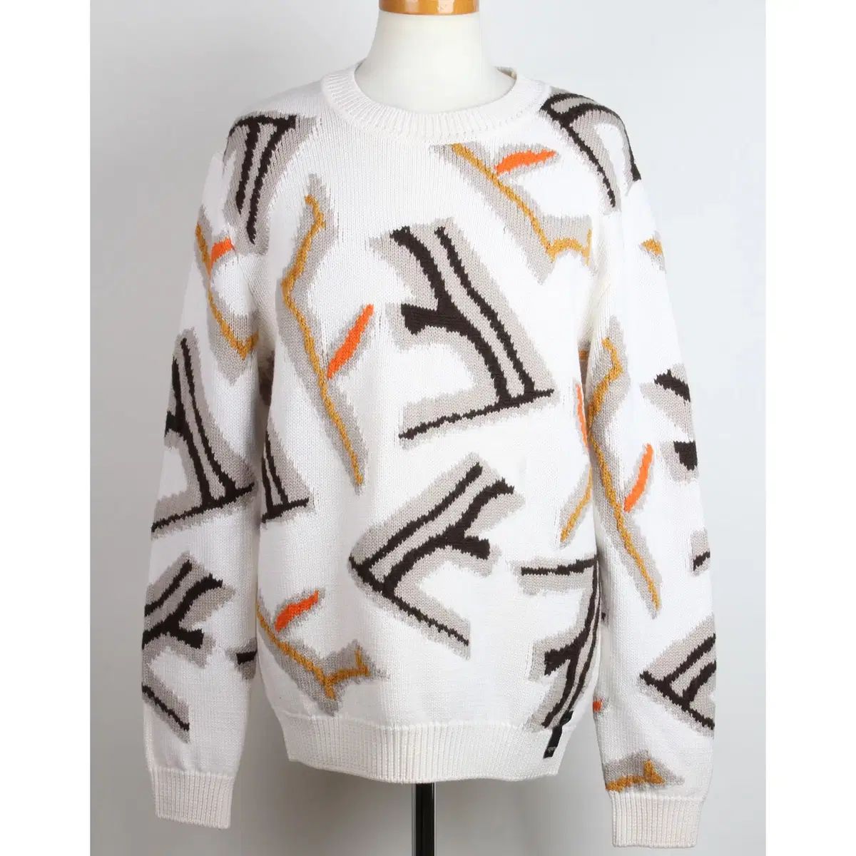 ■ Luxタイム. FENDI フェンディ マルチカラー ロゴ ウール ニット アイボリー 50(100)