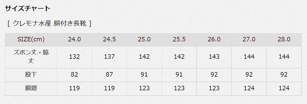 サイズ:25.0cm(ズボン丈・脇丈142cm/股下91cm/胴廻123cm)