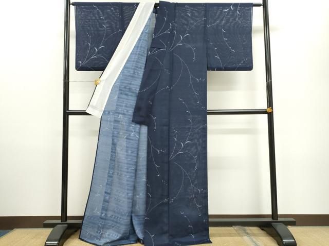 平和屋着物 夏物 小紋 変わり絽 枝葉文 洗える着物 ze