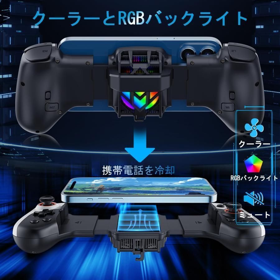 iPhone 15 14 13 Android iOS Switch PC用モバイルゲームコントローラ RGBライト付きクーラーファン ターボ マクロプログラマブル