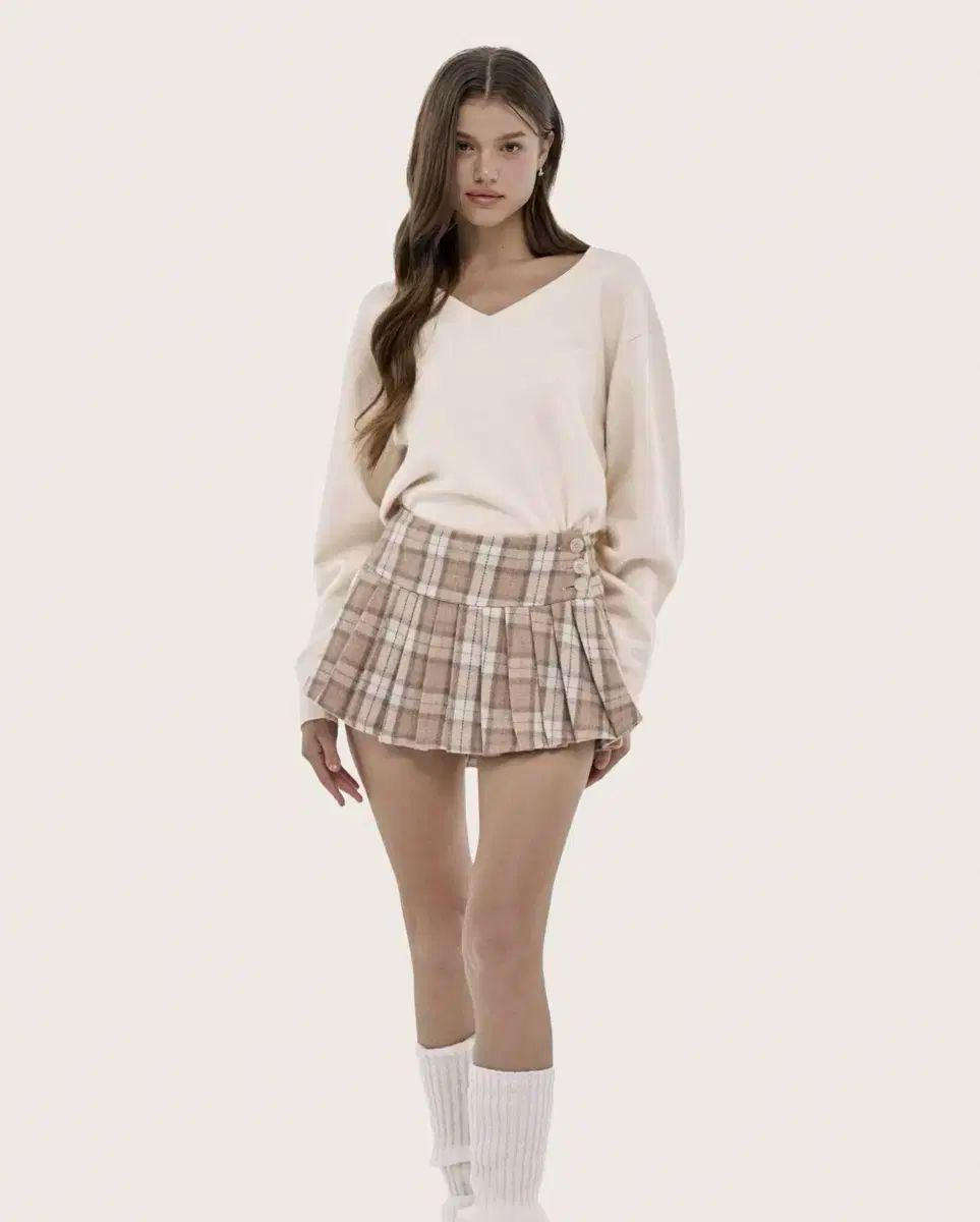 クリシアー ピーチ モカ ウール プリーツ スカート