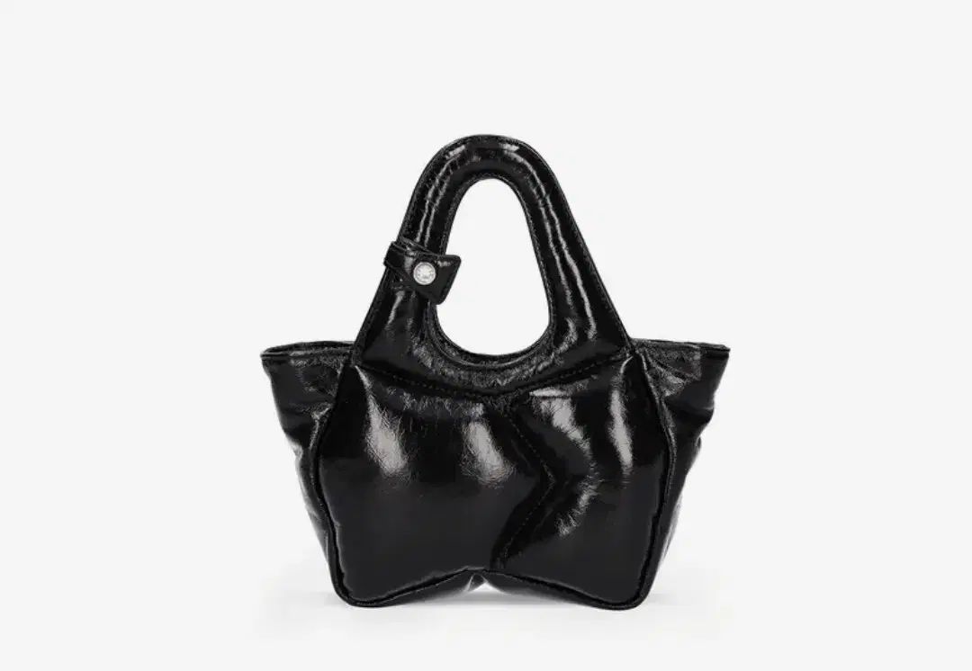 これはShaClaraによるブラックミニバッグです。個性的なデザインと明るい光沢が魅力のバッグです。
