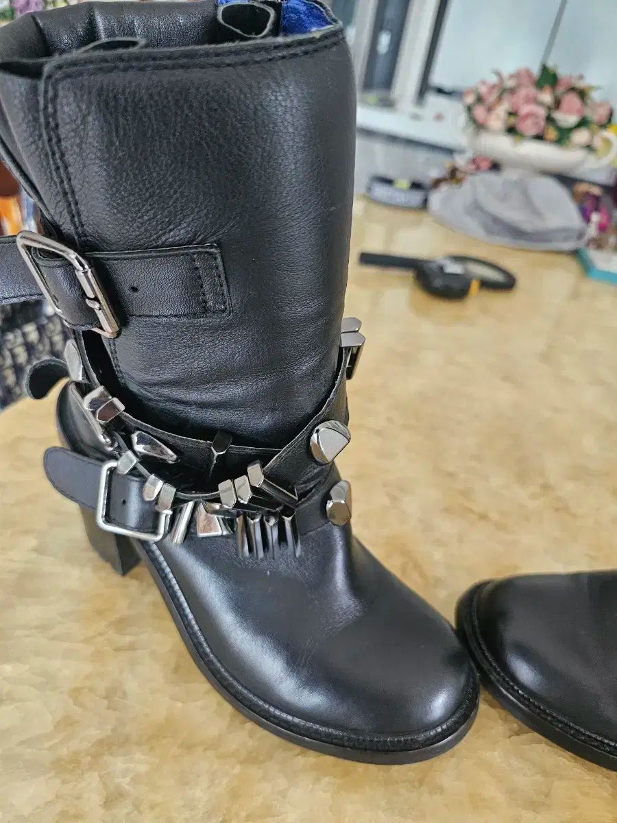 これらはシュコンマ・ボニの黒いブーツです。いくつかのストラップディテールとスタッズがポイントです。また、ある程度の曲率があるため、高さ効果もあります。他に質問がない場合は、すぐに安全な支払いを行ってください!