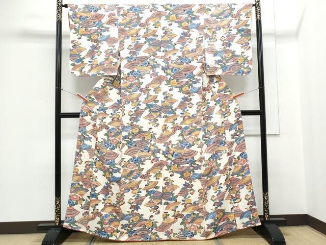 平和屋着物 上質な小紋 型染め 吉祥草花文 鬼しぼ縮緬 正絹 th