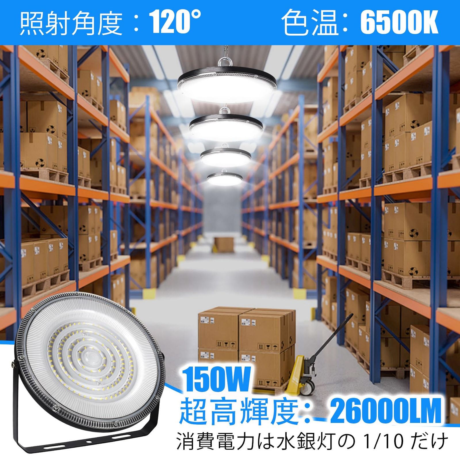 超薄型 セット led投光器 投光器 UFO 高天井灯 LED高天井照明 150 W 防水 100 V 高輝度 26000 lm 6500 K 昼白色 UFO型 IP 66 ハイベイライト AC ガレージライト 掲示板 体育館 展覧会 駐車場 運動場